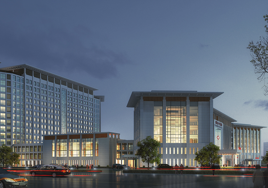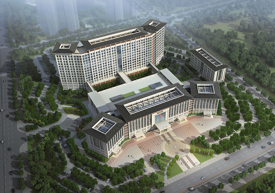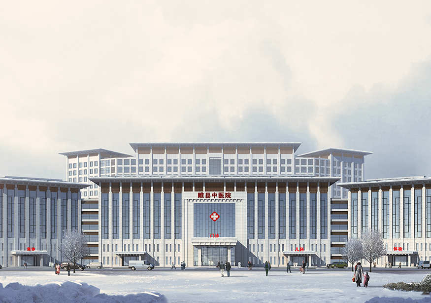 建筑群總體平面形態(tài)呈“鰲”形,形象的說明睢縣中醫(yī)院在當(dāng)?shù)蒯t(yī)療領(lǐng)域乃至全國中醫(yī)院系統(tǒng)獨占鰲頭,同時也象征來此就醫(yī)的患者能夠健康長壽。